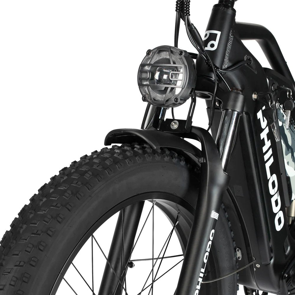 Conquer any terrain with the PHILODO BIKES Jumbo Electric Bike, built for adventure with high-performance fat tires that deliver unmatched stability, grip, and control. Whether you're tackling snow, sand, gravel, or rocky trails, this fat tire e-bike is engineered for off-road domination and smooth urban cruising alike.